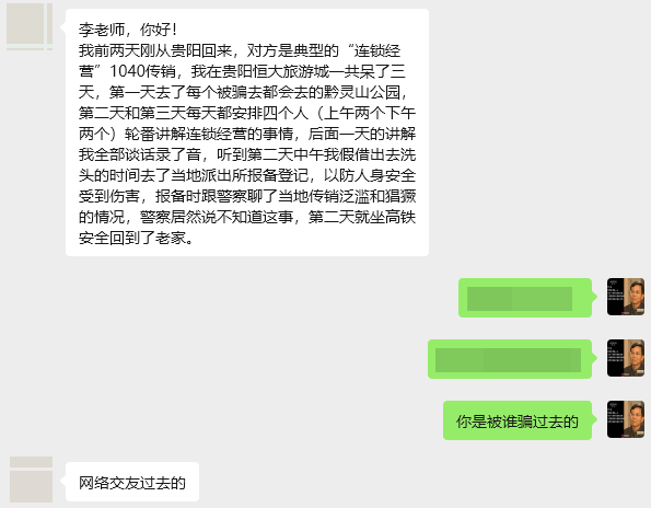 网友小张,趁着国庆节假日去贵阳见网友,没想到,网恋对象是传销参与和,他被领着听了三天课,第四天报警后离开。