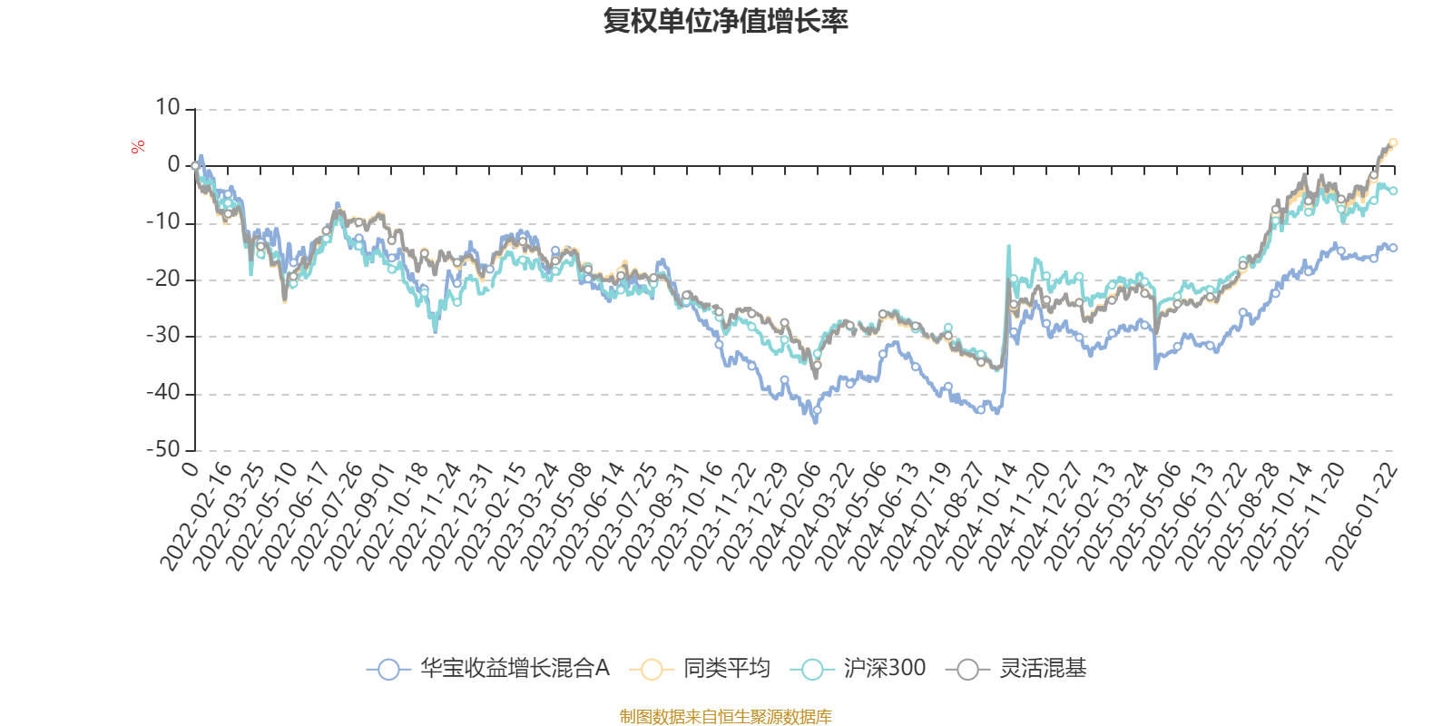 截至1月22日,华宝收益增长混合A近三个月复权单位净值增长率为4.80%,位于同类可比基金861/1286;近半年复权单位净值增长率为15.25%,位于同类可比基金813/1286;近一年复权单位净值增长率为25.66%,位于同类可比基金802/1286;近三年复权单位净值增长率为-2.49%,位于同类可比基金1052/1286。