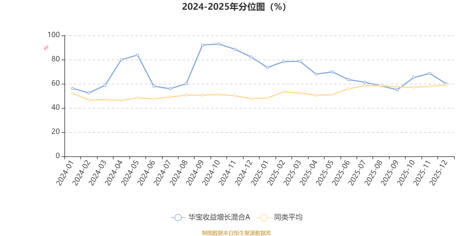 通过所选区间该基金净值增长率分位图,可以观察该基金与同类基金业绩比较情况。图为坐标原点到区间内某时点的净值增长率在同类基金中的分位数。