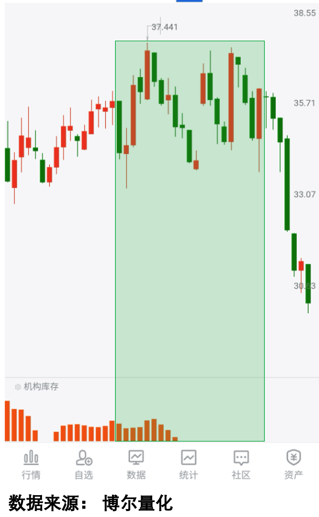看量化大数据就会发现,这波反弹过程中「机构库存」数据始终没有活跃起来,说明机构大资金并没有积极参与,反弹只是短期的波动,自然无法持续。