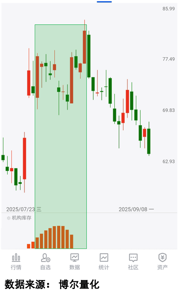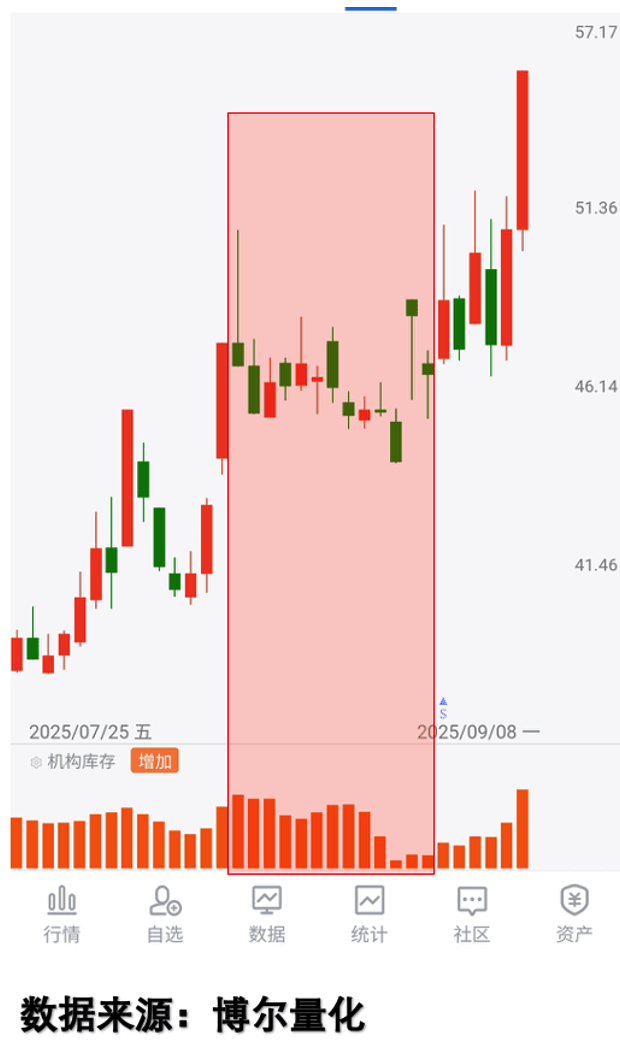 还有一种更迷惑人的情况:标的出现了明显的破位走势,直觉会让我们立刻止损离场,可结果却发现这只是“障眼法”。就像这只标的,破位后很多人慌了神,但量化大数据显示「机构库存」数据始终活跃,说明机构大资金一直在积极参与,后续的走势也验证了这一点。