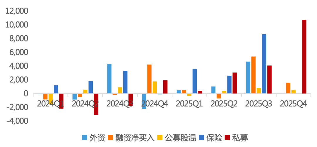 2026-02-24彩票,彩票平台,彩票网站,彩票APP下载,六合彩,快三2025年上涨行情中私募反应速度较快,险资持续流入,公募止盈赎回压力较大,散户相对畏高反应相对滞后。2025年二季度私募资金开始出现明显净流入,四季度资金流入规模大幅提升;2025年险资明显加快了股票市场的投资力度;而