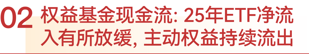 2012Q3以来,净流入超过1.1万亿元,利润合计17189亿元,资金的流入流出行为与今年以来的市场行情相反。2015年市场行情之前主要呈净流出。2019年4季度之后,市场行情促使投资者大幅申购权益基金,资金再度转为大幅净流入。近两年,随着权益市场回暖,主动权益资金仍然持续流出,2025年四个季度,资金净流出分别为659、1047、1985和1027亿元。