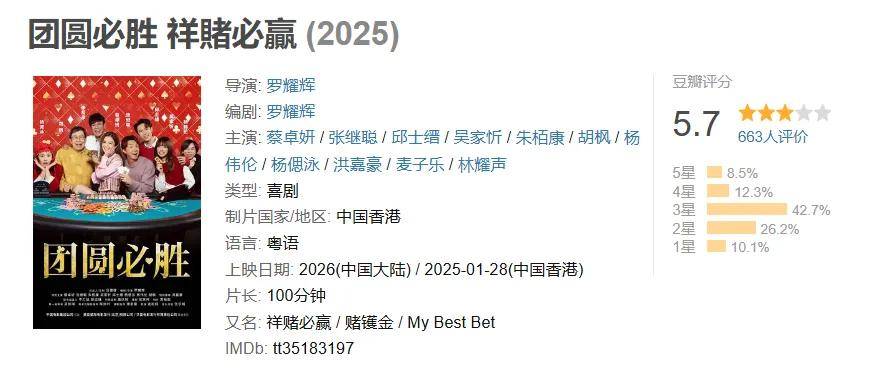 再来,香港2025年的贺岁片真的好难看,票房也不好。这次2026年的贺岁片,无论是香港还是大湾区的观众都不见得会买账。