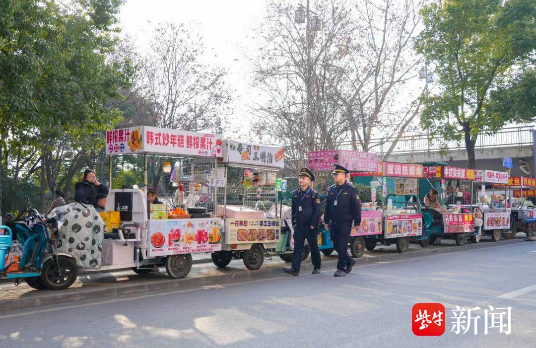 坚持“疏堵结合、动态管控”,六合城管紧盯农贸市场、背街支巷等区域,节前重点加强沿街店面“门前三包”秩序管理。实施“定岗值守+动态巡逻”模式,及时处置占道经营、非机动车乱停放等问题,维护街面秩序。同时,因地制宜盘活闲置空间,累计疏导流动摊点50余个,规范设置7处春节临时疏导点,引导40余个摊位有序经营,既留住“烟火气”,又守住“文明风”。
