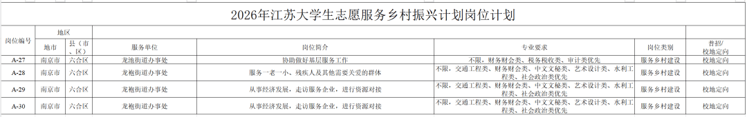 4. “西部计划”与“志愿服务乡村振兴计划”普通批次岗位不能兼报,本次六合校地定向岗位不纳入该兼报限制范围,可放心报名。